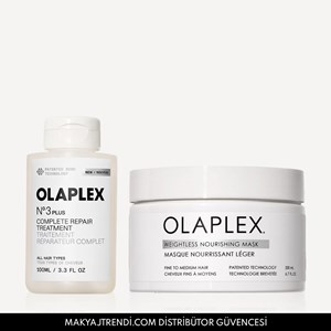 Olaplex Fine Hair Bond Treatment Duo içerisinde Olaplex Weightless Nourishing Mask ve No. 3 Plus Complete Repair Treatment yer alır. Weightless Nourishing Mask ince ve orta telli saçlar için ağırlık hissi yaratmayan besleyici özelliğe sahip maskedir. Saçı ağırlaştırmadan besler ve bu sayede daha hacimli bir görünüm yaratır. Anında 2 kat daha fazla nem ve hacim sağlar. Saçın parlaklığını anında artırır, kırılmayı azaltır ve her yıkamada kırılmayı önleyerek saç sağlığını destekler. No.3 Plus Complete Repair Treatment, markanın en çok satan ürünü No.3’ün formülü güçlendirilmiş versiyonudur. Sadece 3 dakikada saçlara bakım yapar ve onarır. Saç 3 kat daha güçlü ve 3 kat daha yumuşak hale gelir. Zaman içinde %75 daha güçlü saç yapısı oluşturur. Ürün detayları aşağıdadır.