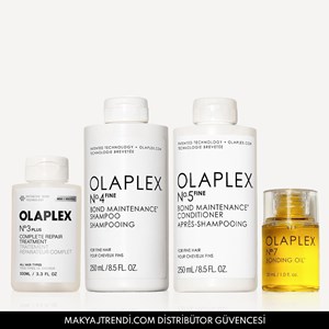 Olaplex Fine Hair Boosting Set içerisinde Olaplex No. 4 Fine Bond Maintenance Shampoo (250ml),Olaplex No. 5 Fine Bond Maintenance Conditioner (250ml), Olaplex No.3 Plus Complete Repair Treatment ve Olaplex No.7 Bonding Oil (30ml) bulunur. No.4 Fine Bond Maintenance Shampoo ince telli saçlar için özel olarak geliştirilmiş, ağırlık yapmadan saçları temizleyen ve hacim veren bağ güçlendirici bakım şampuanıdır. İnce telli saçlara hacim verdiği ve güçlendirdiği klinik olarak kanıtlanmıştır. Saçları nazikçe temizlerken aynı zamanda güçlendirir ve korur. No. 5 Fine Bond Maintenance Conditioner ince telli saçlar için özel olarak geliştirilmiş, ağırlık yapmayan, ultra hafif yapıda bağ güçlendirici saç kremidir. İnce telli saçlara hacim verdiği ve güçlendirdiği klinik olarak kanıtlanmıştır. %60 oranında saç kırıklarının azalmasını sağlar. No. 3 Plus Complete Repair Treatment, markanın en çok satan ürünü No.3’ün formülü güçlendirilmiş versiyonudur. Sadece 3 dakikada saçlara bakım yapar ve onarır. Saç 3 kat daha güçlü ve 3 kat daha yumuşak hale gelir. Zaman içinde %75 daha güçlü saç yapısı oluşturur. No.7 Bonding Oil ultra besleyici, şekillendirici ve onarıcı bakım yağıdır. Saçınızda yağlı bir görünüm bırakmadan saçları onarır ve yeniler. Elektriklenmeyi en aza indirirken 232 dereceye kadar UV/ısı koruması sağlar. Ürün detayları aşağıdadır.