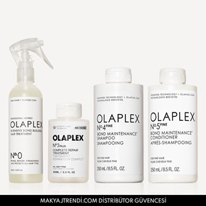 Olaplex Fine Hair Repair Treatment Kit içerisinde Olaplex No. 4 Fine Bond Maintenance Shampoo (250ml),Olaplex No. 5 Fine Bond Maintenance Conditioner (250ml), Olaplex No.3 Plus Complete Repair Treatment ve Olaplex No.0 Intensive Bond Building Hair Treatment bulunur. No.4 Fine Bond Maintenance Shampoo ince telli saçlar için özel olarak geliştirilmiş, ağırlık yapmadan saçları temizleyen ve hacim veren bağ güçlendirici bakım şampuanıdır. İnce telli saçlara hacim verdiği ve güçlendirdiği klinik olarak kanıtlanmıştır. Saçları nazikçe temizlerken aynı zamanda güçlendirir ve korur. No. 5 Fine Bond Maintenance Conditioner ince telli saçlar için özel olarak geliştirilmiş, ağırlık yapmayan, ultra hafif yapıda bağ güçlendirici saç kremidir. İnce telli saçlara hacim verdiği ve güçlendirdiği klinik olarak kanıtlanmıştır. %60 oranında saç kırıklarının azalmasını sağlar. No. 3 Hair Perfector boya, ısı, güneş ve çevresel faktörlerden dolayı yıpranmış, hasar görmüş tüm saçlar için bakım ürünüdür. Olaplex’in en çok satan ürünü olmayı başaran No. 3 Plus Complete Repair Treatment, markanın en çok satan ürünü No.3’ün formülü güçlendirilmiş versiyonudur. Sadece 3 dakikada saçlara bakım yapar ve onarır. Saç 3 kat daha güçlü ve 3 kat daha yumuşak hale gelir. Zaman içinde %75 daha güçlü saç yapısı oluşturur. No.0 Intensive Bond Building Hair Treatment kuru ve hasarlı saçları tekrar hayata döndürmenin ilk adımını sunan bağ güçlendirici ve yoğun onarıcı saç bakım spreyidir. Olaplex’in patentli bağ oluşturma teknolojisinin en yüksek konsantrasyonuna sahiptir. Çok hasar görmüş, yıpranmış saçları onarır, güçlendirir ve sağlıklı görünmesini sağlar. Ürün detayları aşağıdadır.