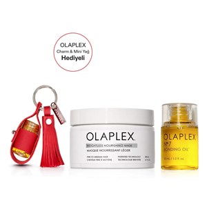Olaplex Fine Hair Smooth Icons Charm Kit içerisinde Olaplex Weightless Nourishing Mask ve No.7 Bonding Oil yer alır. Setin yanında ayrıca çantanız için harika bir aksesuar olabilecek özel tasarım Olaplex Charm ve 7.5ml No.7 Bonding Oil hediyedir. Bu sayede gittiğiniz her yerde saçlarınızın sağlığını ve parlaklığını koruyabilirsiniz. Weightless Nourishing Mask ince ve orta telli saçlar için ağırlık hissi yaratmayan besleyici özelliğe sahip maskedir. Saçı ağırlaştırmadan besler ve bu sayede daha hacimli bir görünüm yaratır. Anında 2 kat daha fazla nem ve hacim sağlar. Saçın parlaklığını anında artırır, kırılmayı azaltır ve her yıkamada kırılmayı önleyerek saç sağlığını destekler. No.7 Bonding Oil ultra besleyici, şekillendirici ve onarıcı bakım yağıdır. Saçınızda yağlı bir görünüm bırakmadan saçları onarır ve yeniler. Elektriklenmeyi en aza indirirken 232 dereceye kadar UV/ısı koruması sağlar. Ürün detayları aşağıdadır.