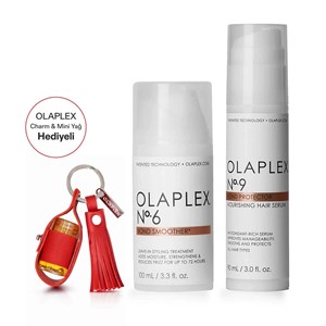 Olaplex Frizz Control Icons Charm Kit No. 6 Bond Smoother (100ml) ve No. 9 Bond Protector Nourishing Hair Serum (90ml)’dan oluşur. Setin yanında ayrıca çantanız için harika bir aksesuar olabilecek özel tasarım Olaplex Charm ve 7.5ml No.7 Bonding Oil hediyedir. Bu sayede gittiğiniz her yerde saçlarınızın sağlığını ve parlaklığını koruyabilirsiniz. No. 6 Bond Smoother 72 saate kadar elektriklenmeyi azaltan ve durulanmayan saç şekillendiricidir. Kuru, boyalı ve kimyasal işlem görmüş tüm saçlar için yüksek konsantre formülüyle saçları nemlendirir ve hasar görmüş bağları güçlendirir. Isıya karşı koruma sağlayan No. 9 Bond Protector Nourishing Hair Serum ise 232 dereceye kadar ısı koruması sağlamasının yanı sıra çevresel faktörlerin verdiği zarardan da korur. Setteki her ürün Olaplex'in patentli bağ güçlendirme teknolojisine sahiptir. Ürün detayları aşağıdadır;