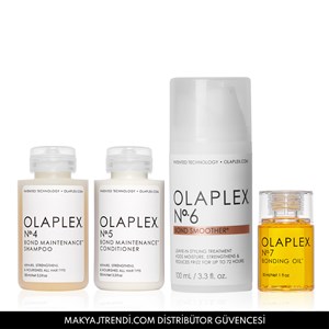 Olaplex Frizz Control & Smoothest Hair Set içerisinde No. 5 Bond Maintenance Conditioner 100ml, No. 4 Bond Maintenance Shampoo 100ml, No.7 Bonding Oil 30ml ve No.6 Bond Smoother 100ml yer alır. No. 6 Bond Smoother 72 saate kadar elektriklenmeyi azaltır, saçları nemlendirir, bukleleri yumuşak bir şekilde belirginleştirir. No.7 Bonding Oil ultra besleyici, şekillendirici ve onarıcı bakım yağıdır. Saçınızda yağlı bir görünüm bırakmadan saçları onarır ve yeniler. Elektriklenmeyi en aza indirirken 232 dereceye kadar UV/ısı koruması sağlar. No. 5 Bond Maintenance Conditioner saçları parlak ve sağlıklı hale getirir. Hasar görmüş bağları onarır, elektriklenmeyi kontrol altına alır. No. 4 Bond Maintenance Shampoo saçı derinlemesine nemlendirir ve güçlendirir. Ürün detayları aşağıdadır.