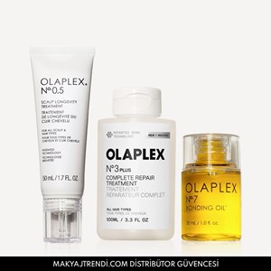 Olaplex Hair Refresh & Revive Trio Set No.0.5 Scalp Longevity Treatment, No. 7 Bonding Oil, No.3 Plus Complete Repair Treatment ürünlerinden oluşur. No.3 Plus Complete Repair Treatment, markanın en çok satan ürünü No.3’ün formülü güçlendirilmiş versiyonudur. Sadece 3 dakikada saçlara bakım yapar ve onarır. Saç 3 kat daha güçlü ve 3 kat daha yumuşak hale gelir. Zaman içinde %75 daha güçlü saç yapısı oluşturur. No.0.5 Scalp Longevity Treatment saç sağlığını korumak için formüle edilmiş dengeleyici, güçlendirici, yaşlanma karşıtı etkili saç derisi serumudur. Sadece saç derisine uygulanır. Pürüzsüz, parlak, sağlıklı saçlar sağlıklı bir saç derisiyle başladığı için bu saç derisi serumu, saç derisini anında nemlendirir, yatıştırır ve aynı zamanda saç derisinin hızla yaşlanmasına karşı koruyarak saç sağlığını destekler. No. 7 Bonding Oil Ultra besleyici, şekillendirici ve onarıcı bakım yağıdır. Saçınızda yağlı bir görünüm bırakmadan saçları onarır ve yeniler. Ürün detayları aşağıdadır;