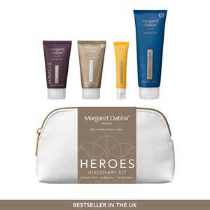 Margaret Dabbs London Heroes Discovery Kit içerisinde markanın en çok satan 4 ikonik ürününün yer aldığı settir. Şık, yeniden kullanılabilir deri güzellik çantasında sunulan bu set özellikle seyahatler için idealdir. İçerisinde Miracle Foot Cream 45ml, PURE Repairing Hand Cream 45ml, Nourishing Nail & Cuticle Serum Pen 15ml ve Firming Leg Serum 100ml bulunur. Uzmanlar tarafından özenle seçilmiş bu koleksiyon, ayaklarınız, elleriniz, tırnaklarınız ve bacaklarınız için etkili bakım yapmanız için ihtiyacınız olan her şeye sahiptir. Miracle Foot Cream ilk kullanımdan itibaren gözle görülür sonuçlar sunan, ayaklarınızı ve tırnaklarınızı tedavi edip koruyan gece bakım kremidir. PURE Repairing Hand Cream ellere 72 saate kadar süren kalıcı ve derinlemesine nemlendirme sağlayan kremdir. Nourishing Nail & Cuticle Serum Pen kuru ve hasarlı tırnakları ve kütikülleri dönüştürmeye yardımcı olur. Firming Leg Serum daha hafif, ince ve genç görünen bacaklar sağlar.