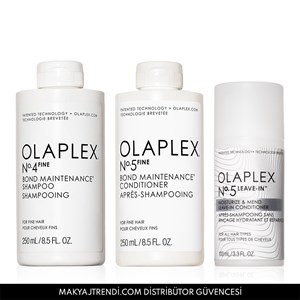 Olaplex HydraFine Set içerisinde Olaplex No. 4 Fine Bond Maintenance Shampoo (250ml), Olaplex No. 5 Fine Bond Maintenance Conditioner (250ml) ve Olaplex No.5 Leave-In Moisturize & Mend Conditioner bulunur. No.4 Fine Bond Maintenance Shampoo ince telli saçlar için özel olarak geliştirilmiş, ağırlık yapmadan saçları temizleyen ve hacim veren bağ güçlendirici bakım şampuanıdır. İnce telli saçlara hacim verdiği ve güçlendirdiği klinik olarak kanıtlanmıştır. Saçları nazikçe temizlerken aynı zamanda güçlendirir ve korur. No. 5 Fine Bond Maintenance Conditioner ince telli saçlar için özel olarak geliştirilmiş, ağırlık yapmayan, ultra hafif yapıda bağ güçlendirici saç kremidir. İnce telli saçlara hacim verdiği ve güçlendirdiği klinik olarak kanıtlanmıştır. %60 oranında saç kırıklarının azalmasını sağlar. No.5 Leave-In Moisturize & Mend Conditioner saç uçlarını anında nemlendiren, yumuşatan, dolaşıklıkları açan ve kırıkları kapatan, saç sağlığını sürekli olarak onaran ve koruyan durulanmayan saç kremidir. Diğer Olaplex ürünlerinde olduğu gibi patentli Bağ Güçlendirme Teknolojisi’ne sahiptir. Saçın sağlıklı görünümünü ve dokusunu geri kazandırır. Ürün detayları aşağıdadır.