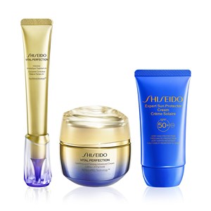 Shiseido Lifting & Retinol & SPF Trio set içerisinde Shiseido Vital Perfection Intensive Wrinkle Spot Treatment A+20 ml, Vital Perfection Uplifting And Firming Advanced Cream 50 ml ve Expert Sun Protector Cream SPF50+ - 50 ml bulunan settir. Shiseido Vital Perfection Intensive WrinkleSpot Treatment A+ derin kırışıklıklar, sıkılık kaybı ve koyu lekeler üzerinde etkili, daha genç görünümlü bir cildi destekleyen hedefe yönelik bakım ürünüdür. Pure Retinol Advanced derin kırışıklık görünümünü azaltır ve cildin sıkılığını artırır. Shiseido Vital Perfection Uplifting and Firming Advanced Cream, sıkılığı, sarkmayı, koyu lekeleri, düzensiz cilt tonunu ve derin kırışıklıkları iyileştirmeye yardımcı olan gelişmiş yaşlanma karşıtı bakım kremidir. İçerisinde yer alan patentli SafflowerRED cildin kendi kendini yenileme sürecini maksimize eder ve hızlandırır. Expert Sun Protector Cream SPF50+, beyaz iz bırakmayan, suya ve ısıya dirençli, yüksek koruma sağlayan güneş kremidir. Özellikle yüz için formüle edilmiştir. Sağlıklı, canlı bir cilt için yaşlanma belirtilerini önlerken güçlü bir UV koruması sağlar. Hafif yapılıdır ve beyaz iz bırakmaz. %60’tan fazla cilt bakım bileşeni içerir. Ürün detayları aşağıdadır.