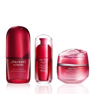 Shiseido Moisture & Strength & Anti- Aging Trio set, cildin güzelliğini her an savunmak için destek veren üçlüsünden oluşan set. Set, Shiseido Ultimune Power Infusing Serum (30ML) , Ultimune Power Infusing Eye Concentrate(15ML) ve Shiseido Essential Energy Hydrating Day Cream SPF20 (50ML) üçlüsünden oluşur. Shiseido Ultimune Power Infusing Serum cildin iç savunmasını etkinleştirirken aynı zamanda stres ve çevresel faktörlere karşı koruma sağlayan serumdur. Cildin yaşlanma sürecini yavaşlatır ve aynı zamanda yaşlanma karşıtı etki sunar. Cildin ideal durumuna ulaşması için cildin kan akışını uyarır. Cildi nemlendirir, stres ve doğal yaşlanma etkilerine karşı korur. Donukluk, pürüzlülük, sıkılık kaybı, ince çizgiler, kırışıklıklar, düzensiz cilt tonu ve elastikiyet kaybıyla savaşır. Ultimune Power Eye Concentrate (15ML), göz çevresinde %30 daha az hasar oluşumunu destekler. Shiseido Essential Energy Hydrating Day Cream SPF20, sağlıklı, ışıltılı ve canlı bir cilt için uzun süreli nemlendirme gücüne sahip, yaşlanma karşıtı gündüz kremidir. Bu krem, Shiseido’ya özel Hyaluronic Acid RED teknolojisi sayesinde cildin nem üretimini harekete geçiren ve ince çizgileri önleyen özel formüllere sahiptir.