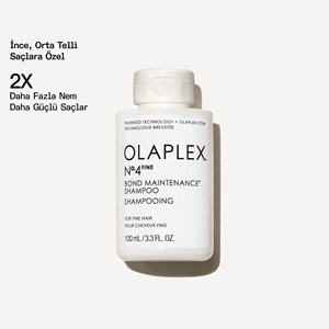 Olaplex No.4 Fine Bond Maintenance Shampoo ince telli saçlar için özel olarak geliştirilmiş, ağırlık yapmadan saçları temizleyen ve hacim veren bağ güçlendirici bakım şampuanıdır. İnce telli saçlara hacim verdiği ve güçlendirdiği klinik olarak kanıtlanmıştır. Saçları nazikçe temizlerken aynı zamanda güçlendirir ve korur. %60 oranında saç kırıklarının azalmasını sağlar. Ultra hafif yapısıyla köklerde hacim ve dolgunluk sağlamaya yardımcı olmak için kirleri temizler. Yumuşak ve pürüzsüz saçlar yaratır. Hidra Dengeleyici Matris ağrılık yapmadan saçı nemlendirir.
