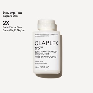 Olaplex No. 5 Fine Bond Maintenance Conditioner ince telli saçlar için özel olarak geliştirilmiş, ağırlık yapmayan, ultra hafif yapıda bağ güçlendirici saç kremidir. İnce telli saçlara hacim verdiği ve güçlendirdiği klinik olarak kanıtlanmıştır. %60 oranında saç kırıklarının azalmasını sağlar. Hafif yapısı ve Hidra Dengeleyici Matris sayesinde saçları ağırlık yapmadan nemlendirir, açar ve kolay taranmasını sağlar. Yumuşak ve pürüzsüz saçlar yaratır.