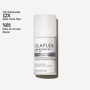 Olaplex No.5 Leave-In Moisturize & Mend Conditioner saç uçlarını anında nemlendiren, yumuşatan, dolaşıklıkları açan ve kırıkları kapatan, saç sağlığını sürekli olarak onaran ve koruyan durulanmayan saç kremidir. Diğer Olaplex ürünlerinde olduğu gibi patentli Bağ Güçlendirme Teknolojisi’ne sahiptir. Saçın sağlıklı görünümünü ve dokusunu geri kazandırır. Hydramino Canlandırıcı Karışım saça nem verir ve bakım yapar, saçların daha pürüzsüz daha parlak görünmesini destekler. 232°C sıcaklığa kadar ısıdan kaynaklanan hasarı onarır ve önler. Tek kullanımda kütikül yüzeyindeki hasarı onardığı klinik olarak kanıtlanmıştır. Amino Asitler, Squalane, Hyaluronik Asit, Ximenia Yağı ve Gliserinden oluşan biyomimetik sistem, ağırlık yapmadan saçlardaki dolaşıklığı açar ve parlaklık sağlar.