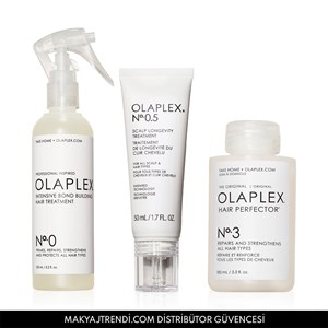 Olaplex Protect Scalp & Repair Hair Trio içerisinde No. 0 Intensive Bond Building Hair Treatment, No. 3 Hair Perfector ve No.0.5 Scalp Longevity Treatment yer alır. No. 0 Intensive Bond Building Hair Treatment No.3 Hair Perfector için astar görevi görür. Çok hasar görmüş ve yıpranmış saçları onarır. No. 3 Hair Perfector hasarları onararak ve saç yapısını koruyarak saçın sağlıklı görünümünü ve dokusunu geri kazandırır. No.0.5 Scalp Longevity Treatment saç sağlığını korumak için formüle edilmiş dengeleyici, güçlendirici, yaşlanma karşıtı etkili saç derisi serumudur. Sadece saç derisine uygulanır. Pürüzsüz, parlak, sağlıklı saçlar sağlıklı bir saç derisiyle başladığı için bu saç derisi serumu, saç derisini anında nemlendirir, yatıştırır ve aynı zamanda saç derisinin hızla yaşlanmasına karşı koruyarak saç sağlığını destekler. Ürün detayları aşağıdadır.