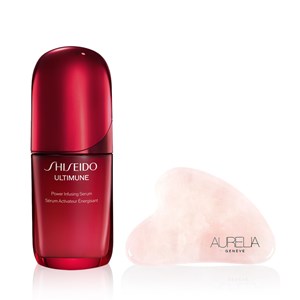 Set içerisinde Shiseido Ultimune Power Infusing Serum 50ML ve Aurelia Geneve Rose Quartz Gua Sha Crystal – Heart yer alır. Cildi yeniler ve adeta terapi etkisi yaratır. Shiseido Ultimune Power Infusing Serum cildin iç savunmasını etkinleştirirken aynı zamanda stres ve çevresel faktörlere karşı koruma sağlayan serumdur. Cildin yaşlanma sürecini yavaşlatır ve aynı zamanda yaşlanma karşıtı etki sunar. Cildin ideal durumuna ulaşması için cildin kan akışını uyarır. Cildi nemlendirir, stres ve doğal yaşlanma etkilerine karşı korur. Donukluk, pürüzlülük, sıkılık kaybı, ince çizgiler, kırışıklıklar, düzensiz cilt tonu ve elastikiyet kaybıyla savaşır. Aurelia Geneve Kalp Şekilli Pembe Kuvars Taşı, cildi iyileştirmeye, gençleştirmeye ve güzelleştirmeye yarayan masaj taşıdır. En önemli özelliği doğal gül kuvars kristalinden yapılmış olmasıdır. Kırışıklık gibi yaşlanma belirtileri üzerinde de çok etkili olur. Çizgileri açar, cildi sıkılaştırır. Ürün detayları aşağıdadır.