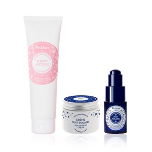 Polaar Revitalizing Night Ritual set içerisinde Polaar Pureté Arctique Cleansing Balm, Polaar Night Revitalizing Cream ve Polaar Night Revitalizing Elixir yer alır. Pureté Arctique Cleansing Balm cildi tahriş etmeden yüz, göz ve dudaklardaki makyajı etkili bir şekilde çıkaran balsamdır. %99 doğal formüle sahiptir, bitkisel yağlar ve Shea Yağı ile zenginleştirilmiş ürün cildi temiz, esnek ve yumuşak hale getirir. Night Revitalizing Cream %95’i doğal içeriklerden oluşan, onarıcı aktif bileşenler bakımından zengin pürüzsüzleştirici gece bakım kremidir. Boreal Algler başta olmak üzere onarıcı aktif bileşenler açısından zengin olan bu krem, donuklaşmış cildi etkili bir şekilde yeniler ve rahatlatır. Night Revitalizing Elixir, %99’u doğal içerikli olan canlandırıcı serumdur. Kuzey yosunu içeriğinin gücü sayesinde cildin ışıltısı ortaya çıkar. Bu canlandırıcı serum, gece boyunca gözle görülür yaşlanma belirtileriyle savaşmaya yardımcı olur. Ürün detayları aşağıdadır.