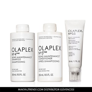 Olaplex Scalp Therapy For Fine Hair Trio set içerisinde Olaplex No. 4 Fine Bond Maintenance Shampoo (250ml), Olaplex No. 5 Fine Bond Maintenance Conditioner (250ml) ve Olaplex No.0.5 Scalp Longevity Treatment bulunur. No.4 Fine Bond Maintenance Shampoo ince telli saçlar için özel olarak geliştirilmiş, ağırlık yapmadan saçları temizleyen ve hacim veren bağ güçlendirici bakım şampuanıdır. İnce telli saçlara hacim verdiği ve güçlendirdiği klinik olarak kanıtlanmıştır. Saçları nazikçe temizlerken aynı zamanda güçlendirir ve korur. No. 5 Fine Bond Maintenance Conditioner ince telli saçlar için özel olarak geliştirilmiş, ağırlık yapmayan, ultra hafif yapıda bağ güçlendirici saç kremidir. İnce telli saçlara hacim verdiği ve güçlendirdiği klinik olarak kanıtlanmıştır. %60 oranında saç kırıklarının azalmasını sağlar. Olaplex No.0.5 Scalp Longevity Treatment saç sağlığını korumak için formüle edilmiş dengeleyici, güçlendirici, yaşlanma karşıtı etkili saç derisi serumudur. Sadece saç derisine uygulanır. Pürüzsüz, parlak, sağlıklı saçlar sağlıklı bir saç derisiyle başladığı için bu saç derisi serumu, saç derisini anında nemlendirir, yatıştırır ve aynı zamanda saç derisinin hızla yaşlanmasına karşı koruyarak saç sağlığını destekler. Ürün detayları aşağıdadır.