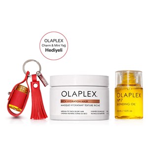 Olaplex Smooth Style Icons Charm Kit içerisinde Olaplex Rich Hydration Mask ve No.7 Bonding Oil yer alır. Setin yanında ayrıca çantanız için harika bir aksesuar olabilecek özel tasarım Olaplex Charm ve 7.5ml No.7 Bonding Oil hediyedir. Bu sayede gittiğiniz her yerde saçlarınızın sağlığını ve parlaklığını koruyabilirsiniz. Rich Hydration Mask kuru, orta ve kalın telli saçlar için yoğun nemlendirici özelliğe sahip ve elektriklenmeyi kontrol altına alan maskedir. Saça 16 kat daha fazla nem kazandırır. Biyomimetik Kütikül Teknolojisi ile formüle edilen bu saç maskesi, saç kütiküllerine 5 yıkamada nemi hapseder ve saç hasarına karşı kalkan oluşturur. No.7 Bonding Oil ultra besleyici, şekillendirici ve onarıcı bakım yağıdır. Saçınızda yağlı bir görünüm bırakmadan saçları onarır ve yeniler. Elektriklenmeyi en aza indirirken 232 dereceye kadar UV/ısı koruması sağlar. Ürün detayları aşağıdadır.