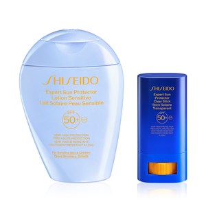 Shiseido Sun Protection To-Go Set içerisinde Shiseido Expert Sun Protector Lotion Sensitive SPF50+ ve Shiseido Expert Sun Protector Clear Stick SPF50+ yer alır. Shiseido Expert Sun Protector Lotion Sensitive SPF50+ hassas ciltler ve çocuklar için özel olarak geliştirilmiş, nazik içeriklere sahip hafif yapılı ve nemlendirici özellikli SPF50+ güneş losyonudur. %85 oranında cilt bakım içerikleriyle formüle edilmiştir. Cildi UV kaynaklı hasara, nem kaybına ve kuruluğa karşı korur. Wetforce teknolojisi ile su ve ter ile temasta koruma daha da güçlenir. Shiseido Expert Sun Protector Clear Stick SPF50+ hem günlük hayatta hem de seyahat halindeyken UV savunması için SPF 50+ içeren şeffaf güneş koruyucudur. SychroShield Teknolojisi ile güçlendirilen bu stik güneş kremi, su ve ısıyla daha da güçlenen bir formüle sahiptir. Argan yağı ile ince çizgiler ve eşit olmayan cilt tonunu gözle görülür şekilde iyileştirir ve daha pürüzsüz bir cilt ortaya çıkarır. %65 cilt bakım içeriklerine sahiptir. Ürün detayları aşağıdadır.