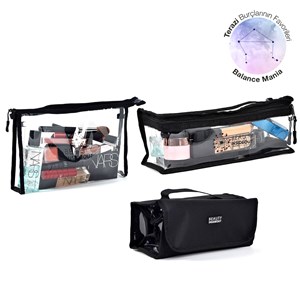 Set içerisinde Beauty InsideOut Beauty Middle Bag, Beauty Versatile Bag ve Beauty Partner Bag seyahat, makyaj ve güzellik çantası yer alır . Beauty Middle Bag boyutları (30cmx20cmx5cm) idir. Bu şık orta boydaki çanta, Makyaj Trendi markası olan Beauty InsideOut ürünüdür. Orta boy olduğu için çantada veya bavulda malzemelerinizi en konforlu şekilde saklar. Beauty Versatile, katlamalı, 4 şeffaf bölmeli profesyonel makyaj ve seyahat çantasıdır. Katlamalı olduğu için özellikle seyahatlerde kullanılması için tasarlanmıştır. Beauty Partner, dikdörtgen, şeffaf makyaj ve güzellik çantasıdır. Çantanın boyutları (27cmx10cmx8cm) idir. Üzerinde tutacak kısmı vardır. Ürün detayları aşağıdadır.