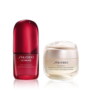 Set içerisinde Shiseido Ultimune Power Infusing Serum 30 ml ve Shiseido Benefiance Wrinkle Smoothing Cream Enriched yer alır. Ultimune Power Infusing Serum, cildin iç savunmasını etkinleştirirken aynı zamanda stres ve çevresel faktörlere karşı koruma sağlayan serumdur. Cildin yaşlanma sürecini yavaşlatır ve aynı zamanda yaşlanma karşıtı etki sunar. Cildin ideal durumuna ulaşması için cildin kan akışını uyarır. Benefiance Wrinkle Smoothing Cream Enriched, Neuroscience‘dan (sinirbilimi) esinlenerek tasarlanan ilk anti-aging üründür. Bunun anlamı şudur: Cildi genç ve ışıltılı bir görünüme kavuşturmak için anti-aging bakımda daha hızlı sonuç veren ReNeura Teknolojisi+ ile üretilmiştir. Ürün detayları aşağıdadır.