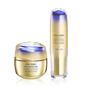Shiseido Vital Perfection All Day Lifting Set içerisinde Vital Perfection LiftDefine Radiance Night Concentrate ve Vital Perfection Concentrated Supreme Cream 50 ml yer alır. Vital Perfection LiftDefine Radiance Night Concentrate sıkılaşmış, toparlanmış ve yeniden kontürü belirginleşmiş bir görünüm için uyurken yer çekimi etkilerine meydan okuyan gece konsantresidir. Cilt sarkmasıyla yoğun bir şekilde mücadele eder. Vital Perfection Concentrated Supreme Cream sıkılaşmış, toparlanmış ve yeniden kontürü belirginleşmiş görünüm için cildin ihtiyaçlarını hedefleyen yaşlanmaya karşıtı bakım kremidir. Besin ağını güçlendirmeye ve cildin kendini yenilemesine yardımcı olur. Cildin içten sarkmasını önler. Ürün detayları aşağıdadır.