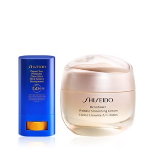 Shiseido Wrinkle Resist & Sun Protection Power Duo içerisinde Shiseido Benefiance Wrinkle Smoothing Cream 50ml ve Shiseido Expert Sun Protector Clear Stick SPF50+ yer alır. Benefiance Wrinkle Smoothing Cream, Neuroscience‘dan (sinirbilimi) esinlenerek tasarlanan ilk anti-aging üründür. Bu krem, sadece 2 haftada gözle görülür bir şekilde kırışıklıkları azaltır, ince çizgileri düzeltir ve cilde nem verir. Expert Sun Protector Clear Stick SPF50+ hem günlük hayatta hem de seyahat halindeyken UV savunması için SPF 50+ içeren şeffaf güneş koruyucudur. SychroShield Teknolojisi ile güçlendirilen bu stik güneş kremi, su ve ısıyla daha da güçlenen bir formüle sahiptir. Argan yağı ile ince çizgiler ve eşit olmayan cilt tonunu gözle görülür şekilde iyileştirir. Ürün detayları aşağıdadır.